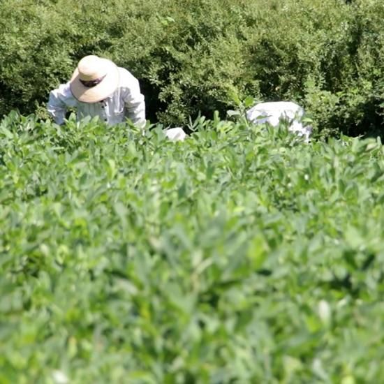 畑で花が咲き、その花が地中に潜り、やがて実が成って収穫すると、硬い殻の中に実が包まれています。牛久の大地でお日様と風の恵みを受けて、端正に育った自然食品です。